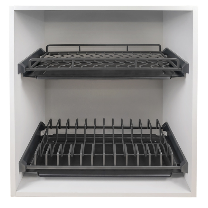 Каждый «этаж» PANDORA оснащён поддоном из плотного пластика графитового цвета, который легко вынимается для чистки. Выверенный узор решёток позволяет размещать тарелки популярного формата, а утолщённые прутки способствуют лучшему удерживанию посуды.