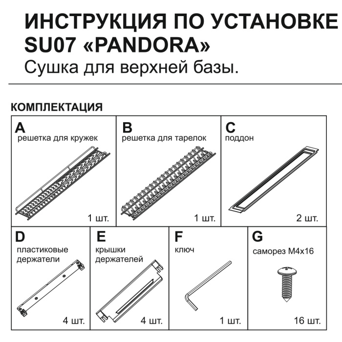 PANDORA SU07 — сушка для посуды в верхнюю базу в современном дизайне ESTETICA и нанопокрытии графитового цвета, которое обеспечивает повышенную износостойкость, ударопрочность и устойчивость к коррозии. Свойства нанопокрытия проверены испытаниями: сушка SU07 легко выдерживает более 180 часов в соляном тумане без проявления каких-либо дефектов.