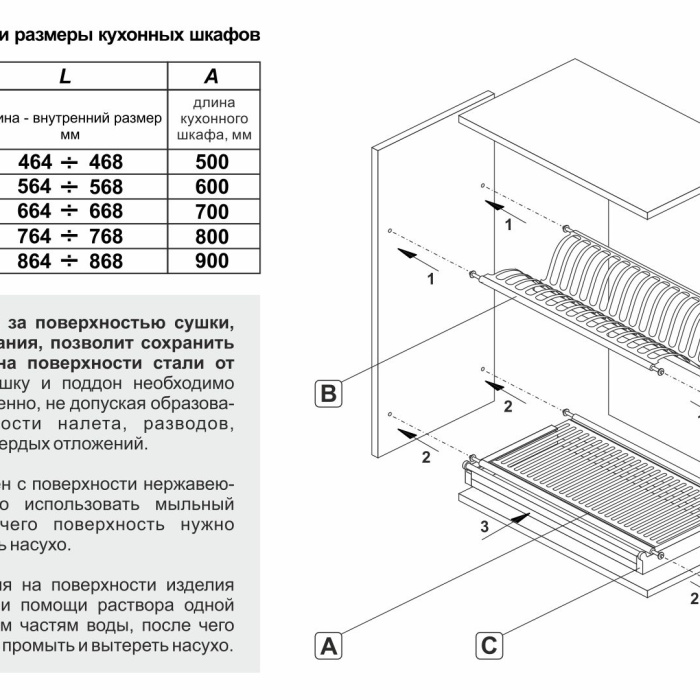 Двухуровневая сушка для посуды быстрого монтажа для современных кухонных гарнитуров позволяет размещать значительное количество вымытой посуды. Модель оснащена стальным поддоном для сбора стекающих с посуды капель воды. Одно из достоинств сушки – быстрый монтаж: конструкция монтируется в предварительно просверленные отверстия. Материал конструкции – нержавеющая сталь и пластик.