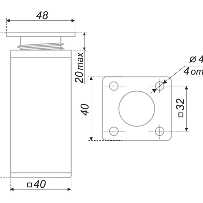 N306 – опора металлическая регулируемая (до 20 мм) с пластиковой пятой.