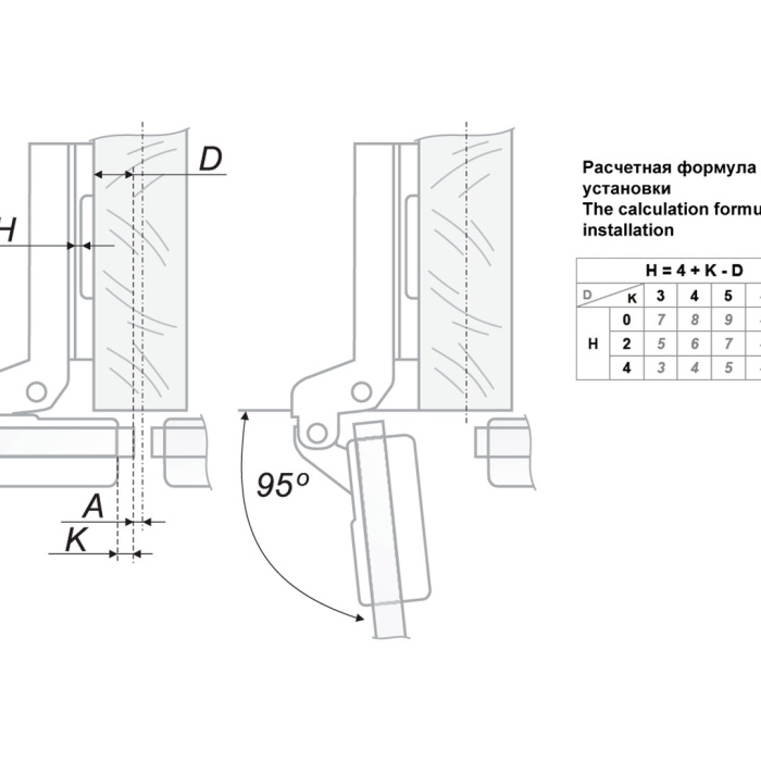 Угол открывания: 95°