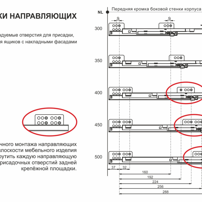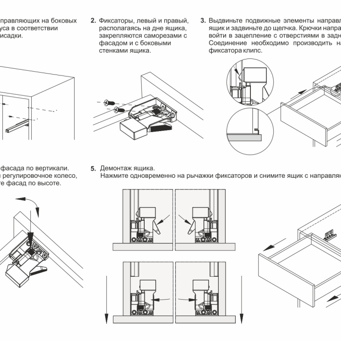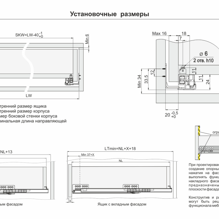 При проектировании вкладных ящиков необходимо создание опорных площадок для упора в момент нажатия на фасад (опорные площадки должны выполнять функцию боковой стенки в варианте накладного фасада), а также опорные площадки предназначены обеспечивать нахожд