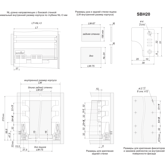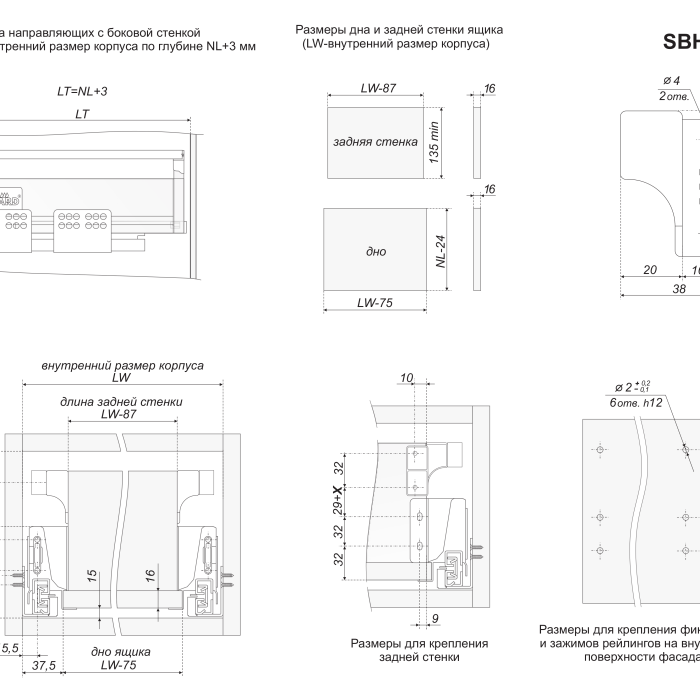 Держатель дна и задней стенки для ящика под мойку SBH29/GRPH