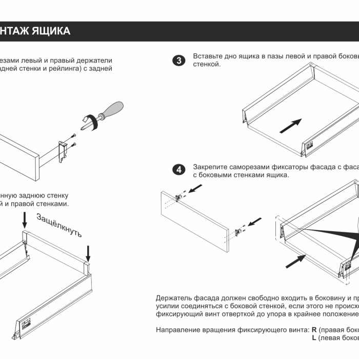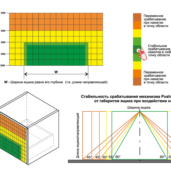 Модель эксклюзивно имеет специальный ограничитель механизма PUSH, что позволит избежать поломки системы выдвижения в процессе установки ящика на направляющие с прилагаемым усилием. Ограничитель также выполняет функцию упора для вкладных ящиков.